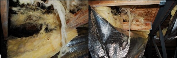 - FSK facing was pulled away to inspect underlying insulation and roof decking.