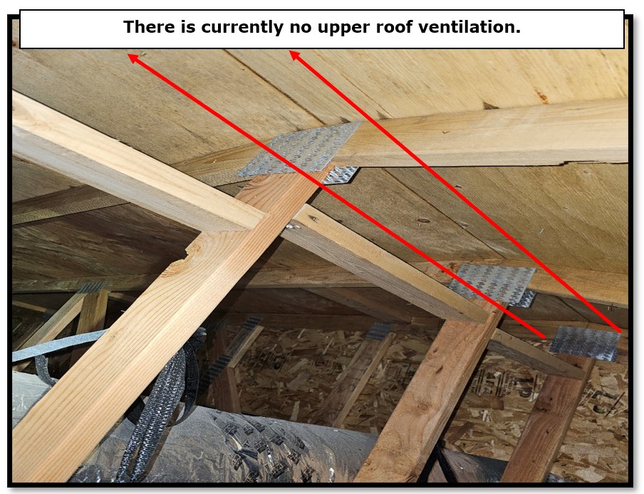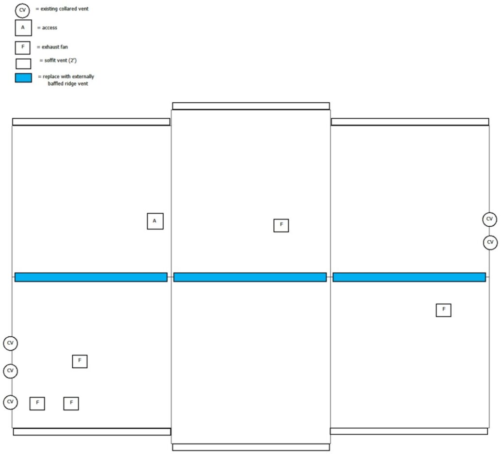 - Replace internally baffled ridge vent with externally baffled model. Cutback of sheathing is necessary. Qty = 63 Ft