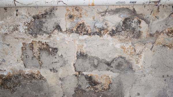Mold growth on a concrete wall due to excess humidity.
