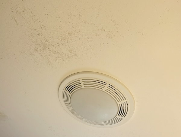 The main-floor bathroom is small and doesn’t have a functioning fan. There’s some buildup and possible ghosting on the ceiling, along with what looks like mold. I’d love to hear your thoughts.